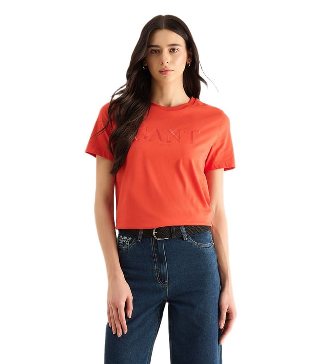 Womens Red Round Neck T-Shirt