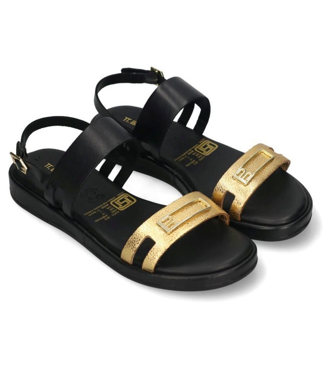 Women's Ravenna Black & Gold Logo Back Strap Sandals