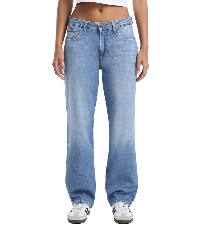 G12 Navy Blue Pleated Mid Rise Extra Wide Leg Fit Denim