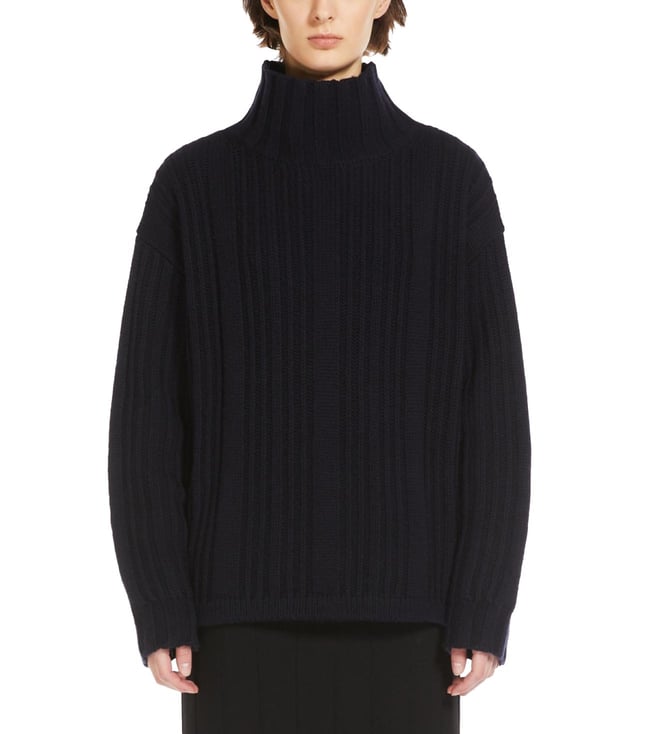 Navy Blue Polo-Neck Woven Design Oversized Fit Jumper