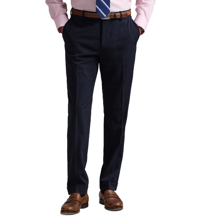 Blue Striped Performance Regular Fit Twill Trousers