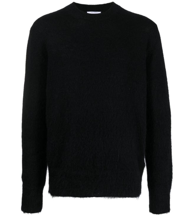 Black Ribbed Woven Design Slim Fit Sweater
