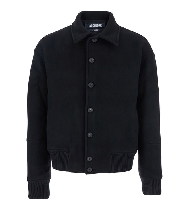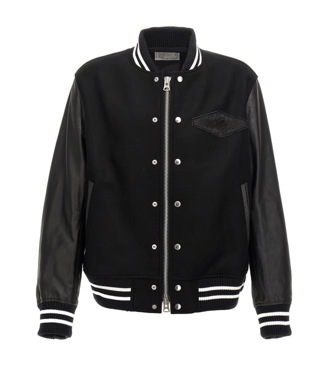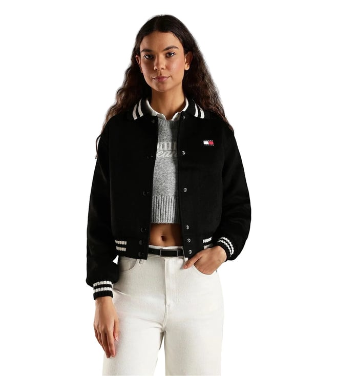 Black Regular Fit Polyester Baseball Collar Bomber Jacket