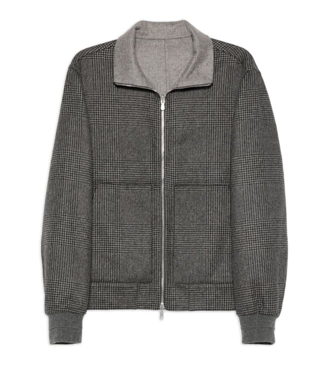Grey Check Print Bomber Jacket