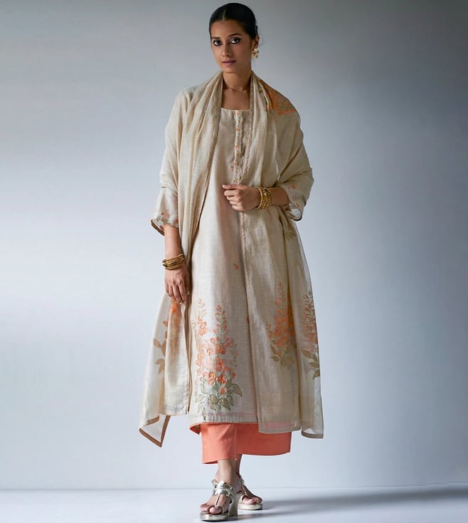 Beige Saadagi Woven Kurta with Pant and Dupatta