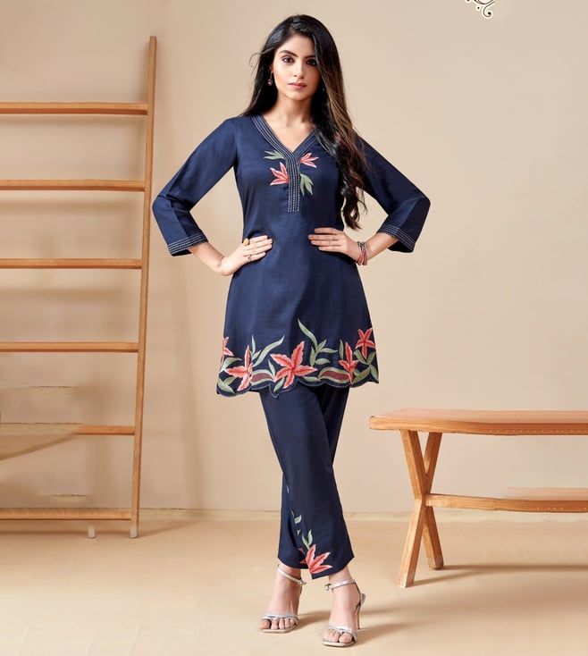 Indigo Modina Indigo Applique Tunic with Pant Co-ord Set