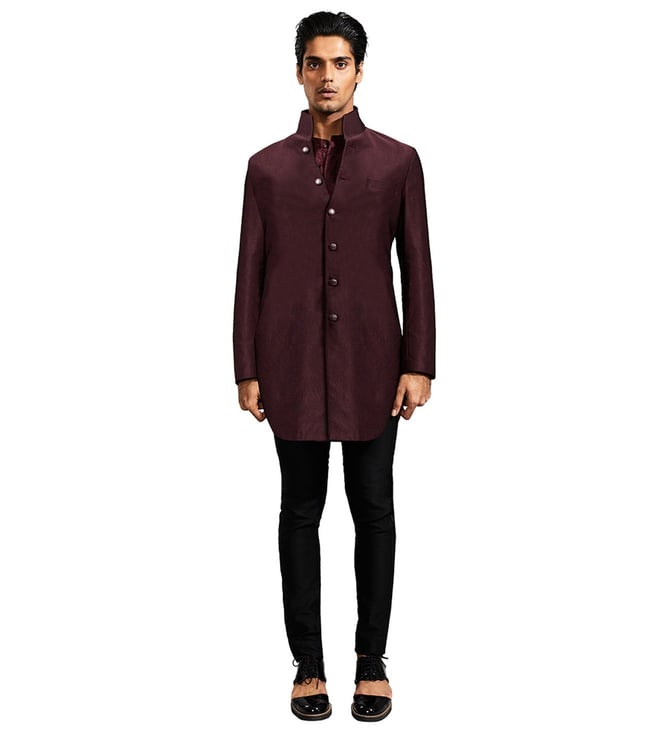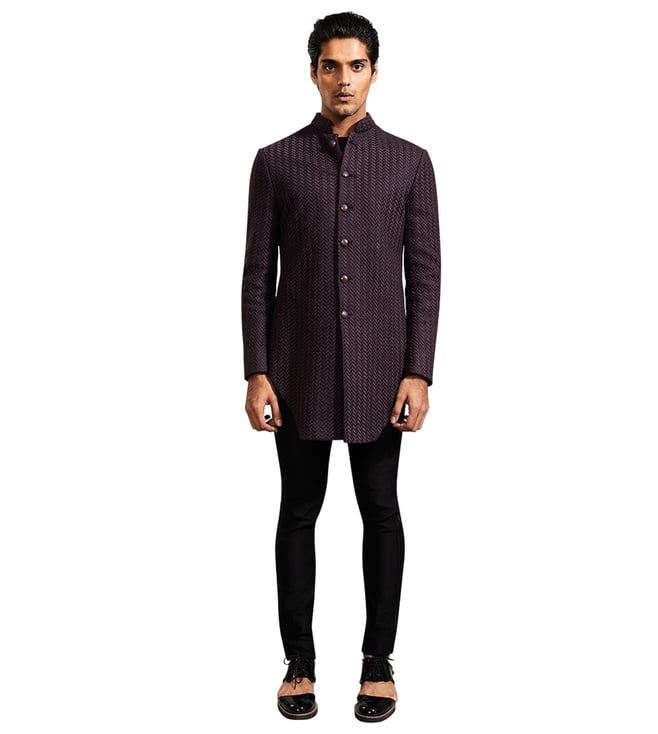 Beige Micro Foilage Short Decon Kurta Wth Jacket