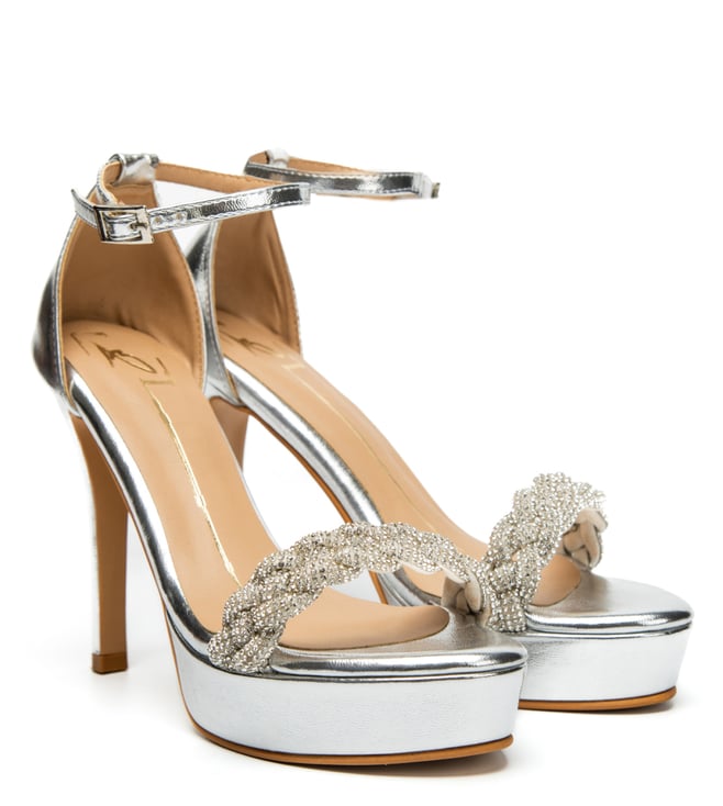 Silver Pleated Ariana Party Platform Block Heels