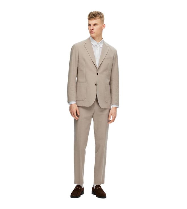 Dark Grey Structured Slim Fit Flat Front Trousers