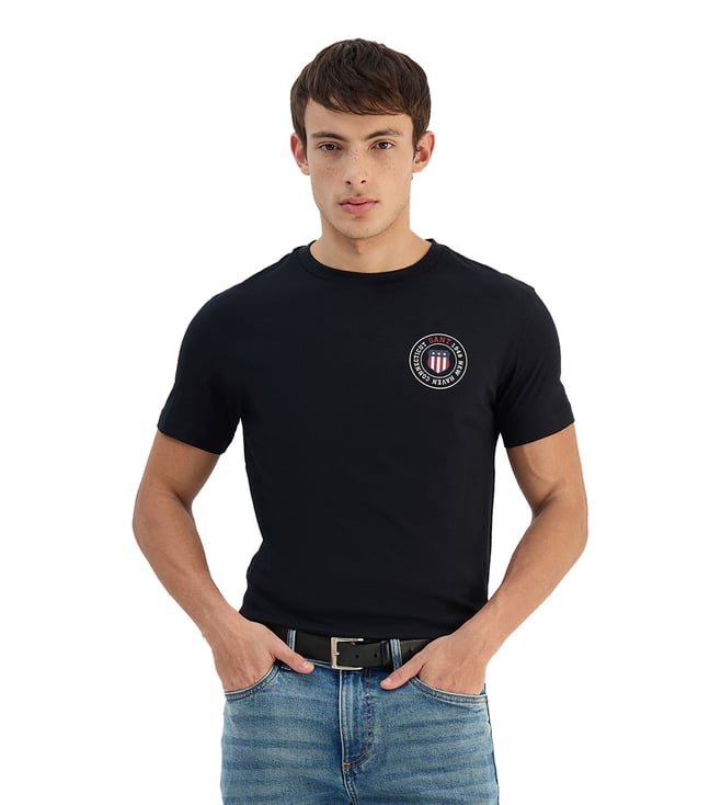 Men Black Logo Crew Neck Regular Fit T - Shirt