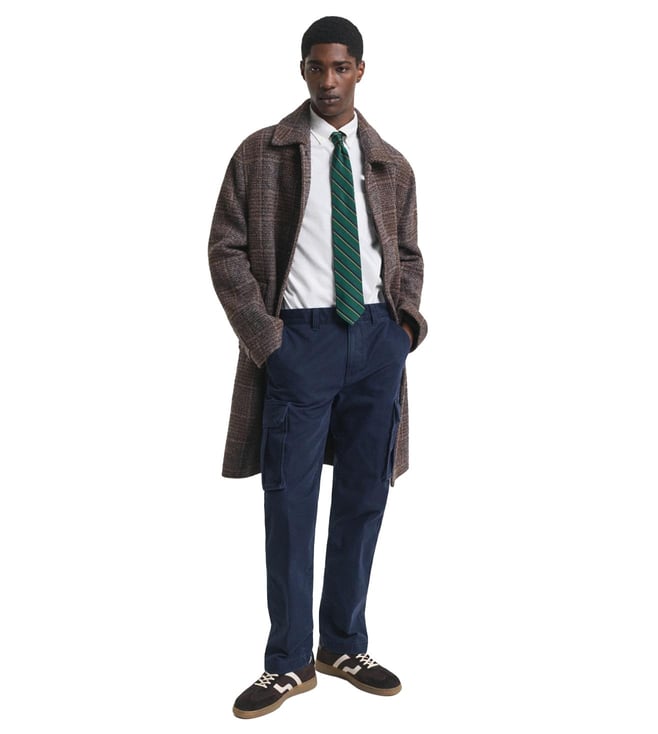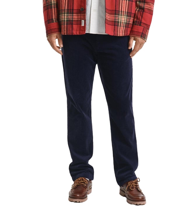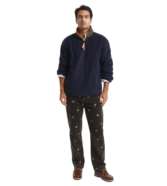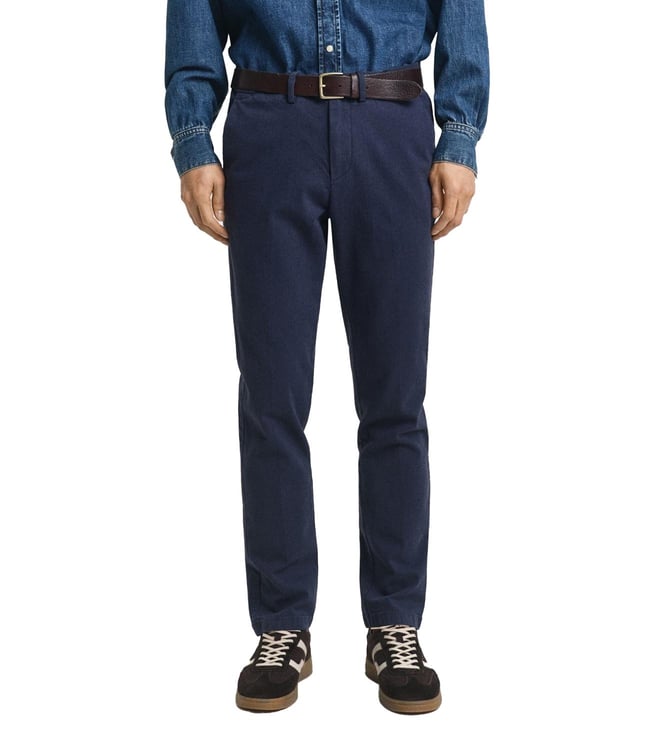 Evening Blue Preppy Chain Print Regular Fit Flat Front Trousers
