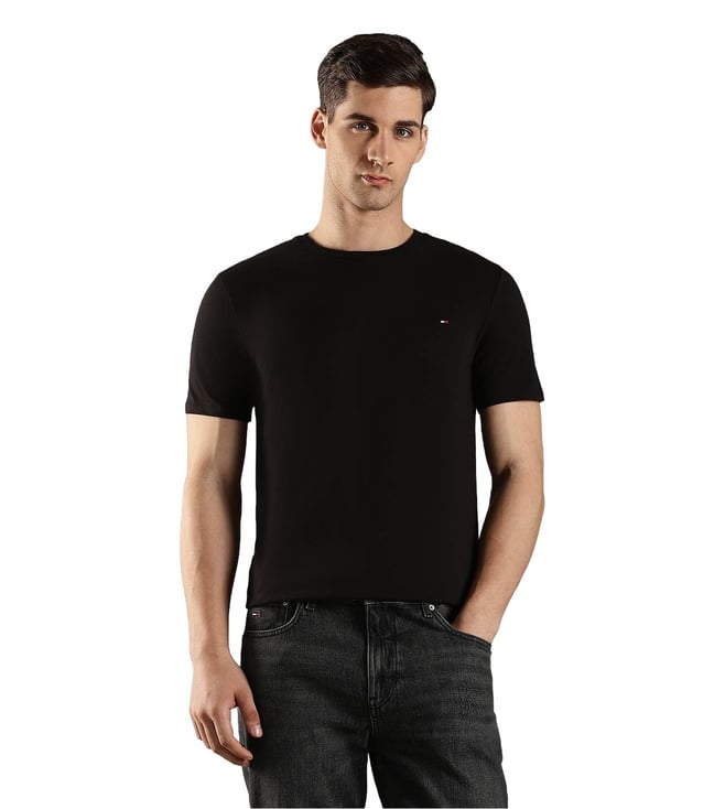 Black Cotton Slim Fit Logo Printed T-Shirt