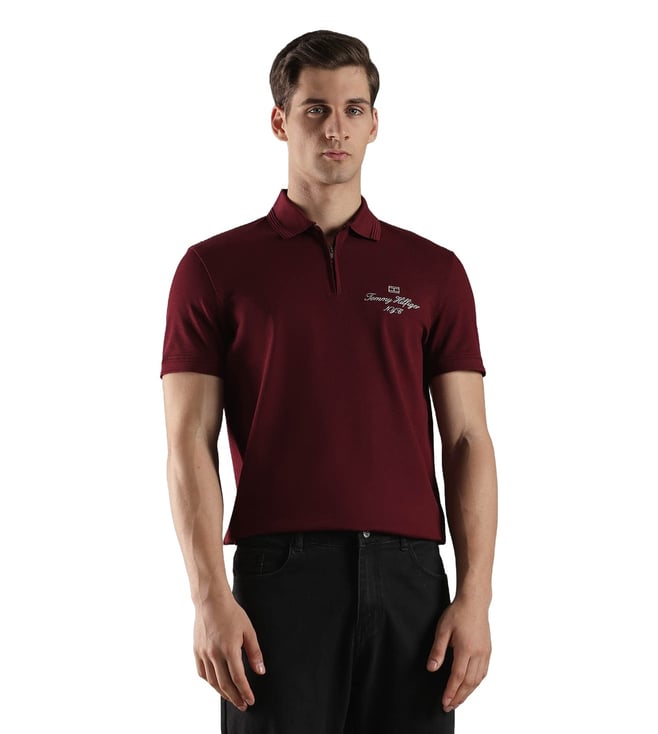 Burgundy Cotton Regular Fit Polo T-Shirt