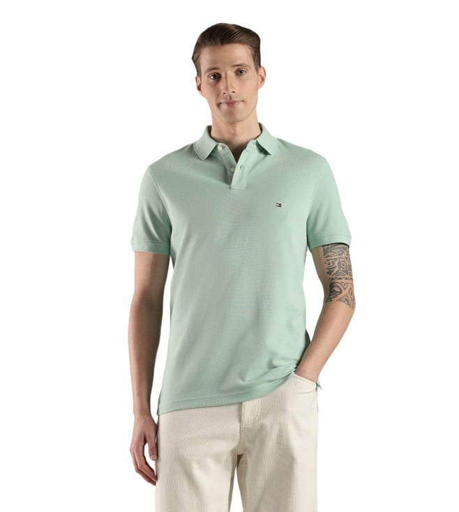 Green Cotton Regular Fit Logo Printed Polo T-Shirt