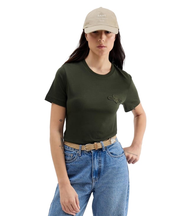 Dark Moss Green Regular Fit Solid Short Sleeves T-Shirt