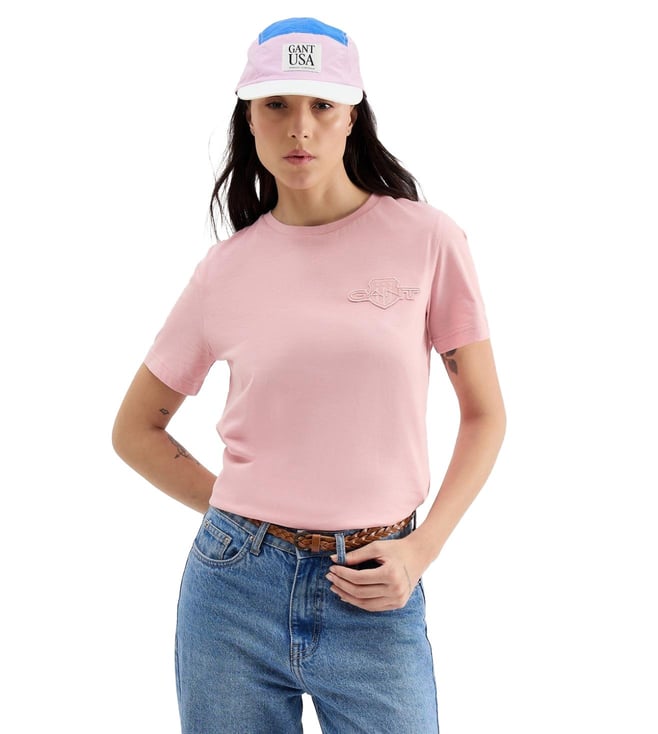 Pink Regular Fit Solid Short Sleeves T-Shirt