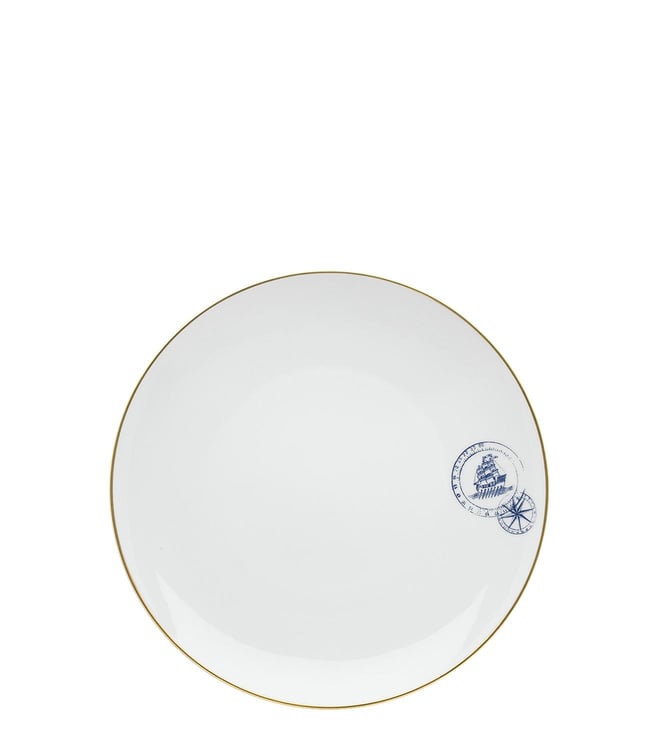 Blue & White Fine Porcelain Transatlantica Tea Cup & Saucer - Set of 2