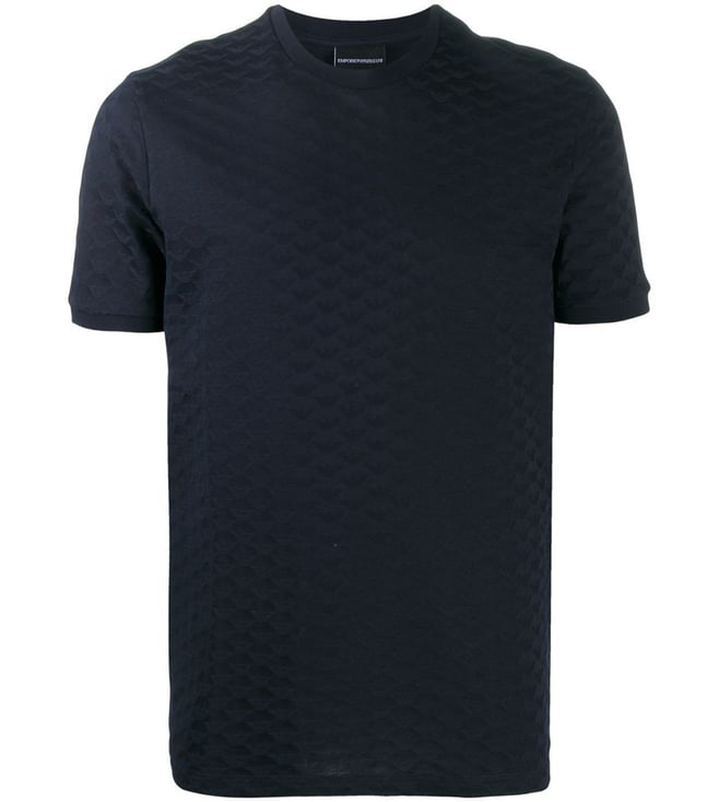 Black Round Neck Textured T-Shirt