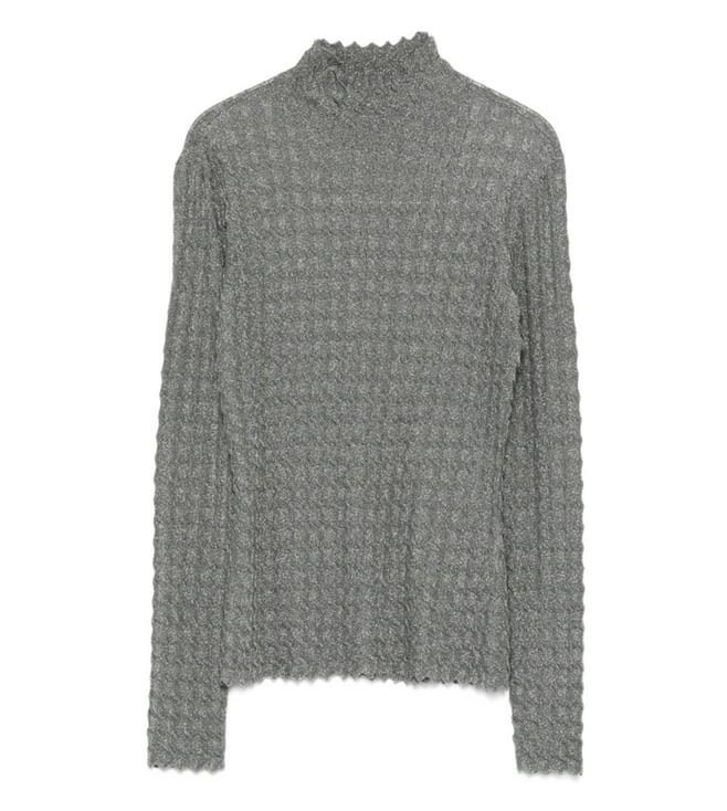Silver Textured Turtleneck Sweater