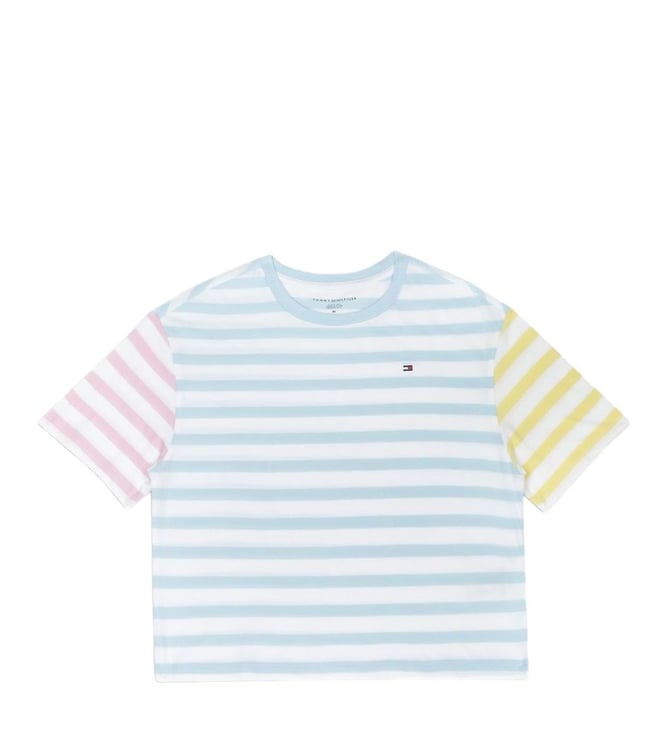 Girls Blue Striped Regular Fit T-Shirt