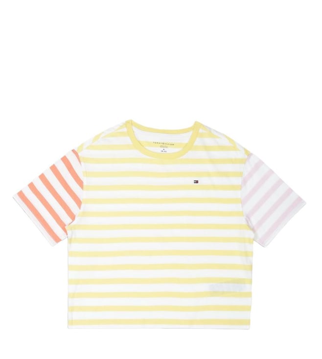 Girls Yellow Striped Regular Fit T-Shirt