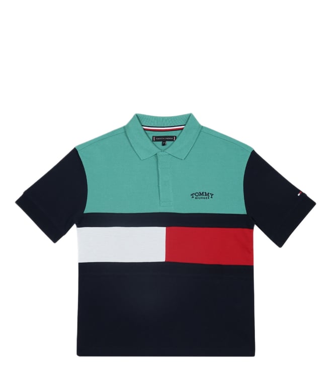 Boys Turquoise Printed Regular Fit Polo T-Shirt