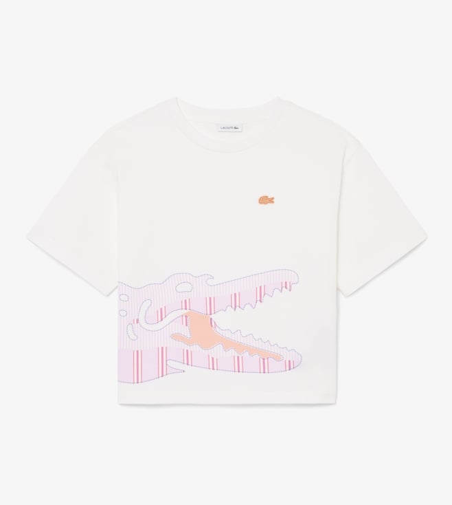 White Cotton Regular Fit Printed T-Shirt