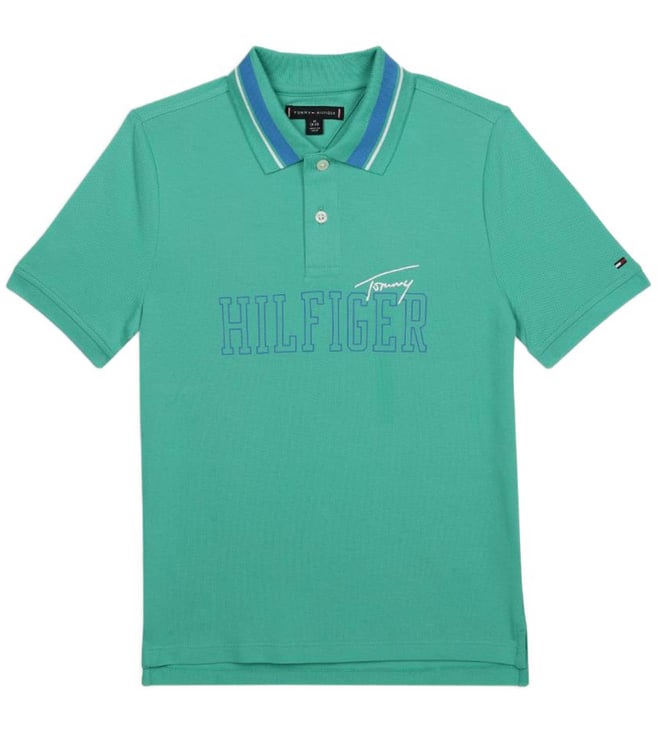 Boys Green Printed Regular Fit Polo T-Shirt