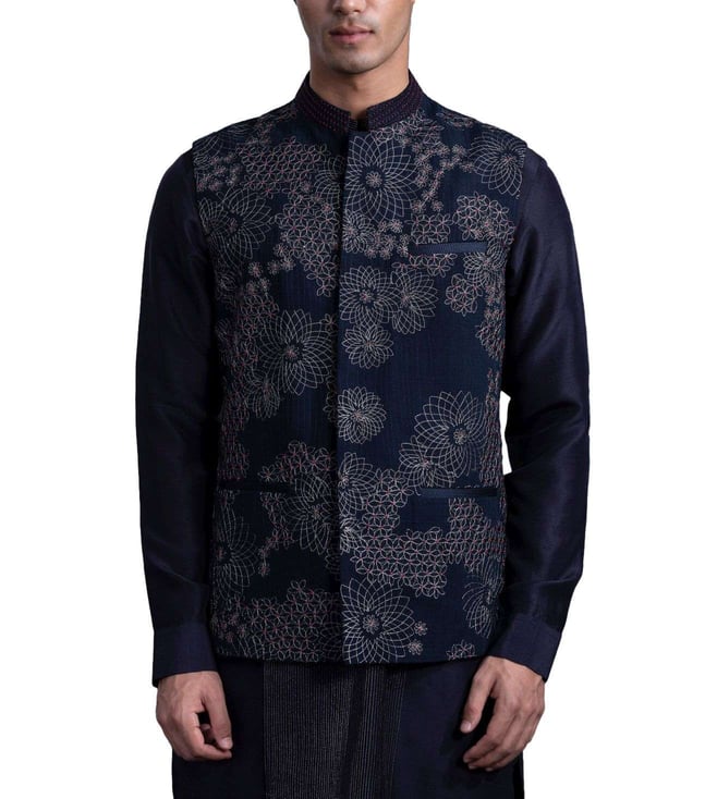 Midnight Navy Contemporary Hand Embroidered Bundi