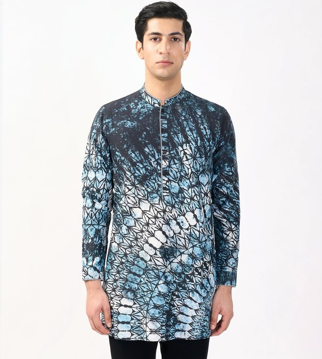 Ivory & Periwinkle Ombre Long Waist Jacket and Kurta with Churidar