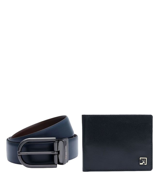 Blue & Brown Textured Small Leather Wallet and Belt Gift Set