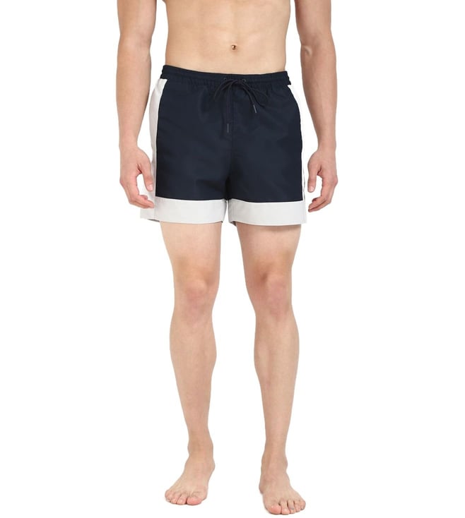 Dark Sapphire Mid rise Colour-Block Slim Fit Swim Short
