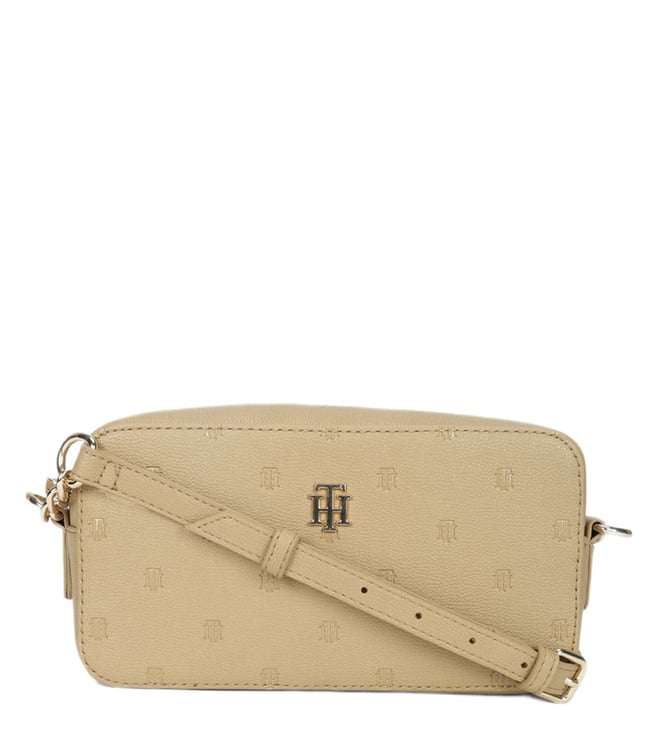 100% Polyurethane Beige Women Sling Bag