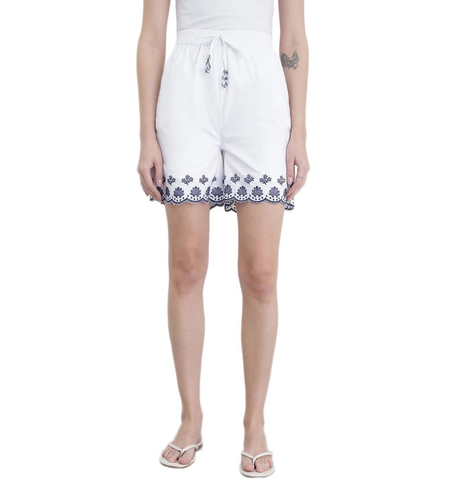 Black Embroidered Relaxed Fit Zoey Dobby Piquet Shorts