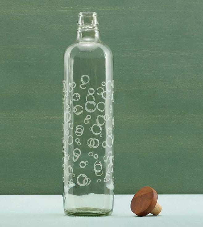 Clear Bubbles Glass Water Bottle with Wooden Stopper