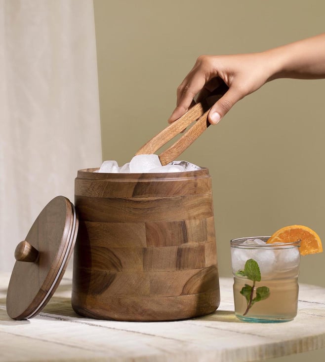 Transparent 6.8L Glass Water Iced Drink Dispenser Jar with TapWooden Cold Beverage