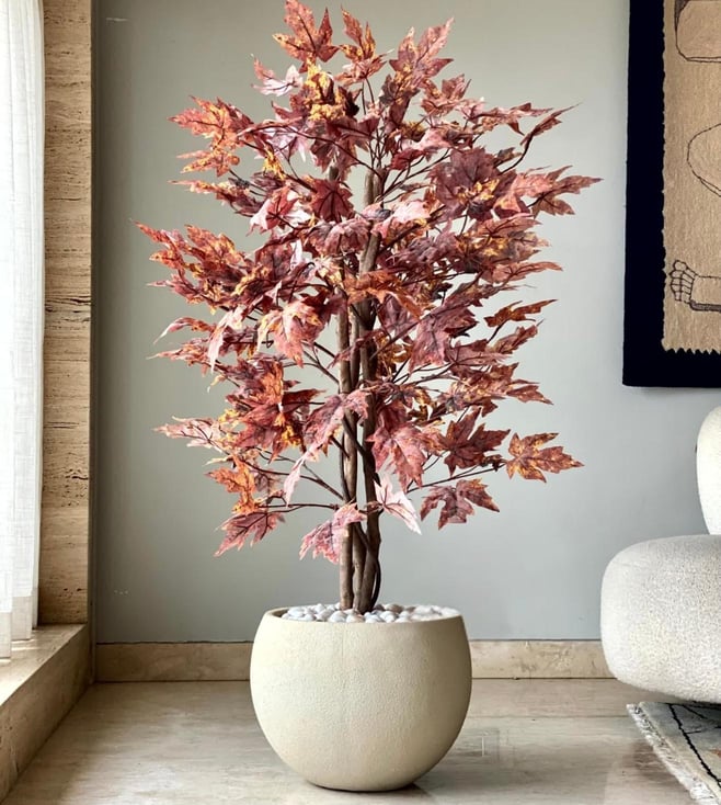 Maroon Natural Wooden Trunk + Pvc Tall Plants