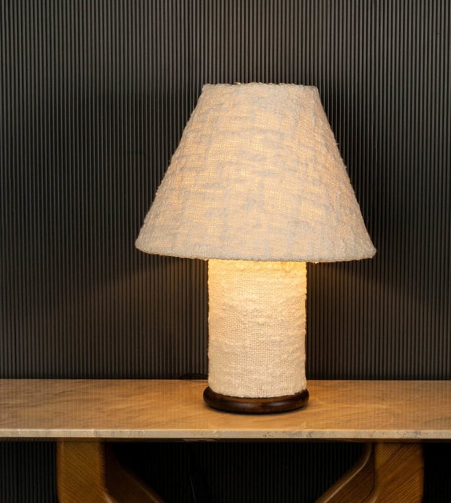 Diamond Cut Antique Brass Finish Glass Table Lamp with Off White Shade - Large