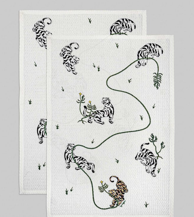Ecru Lurking Crocodile Cotton Hand Towels Set Of 2