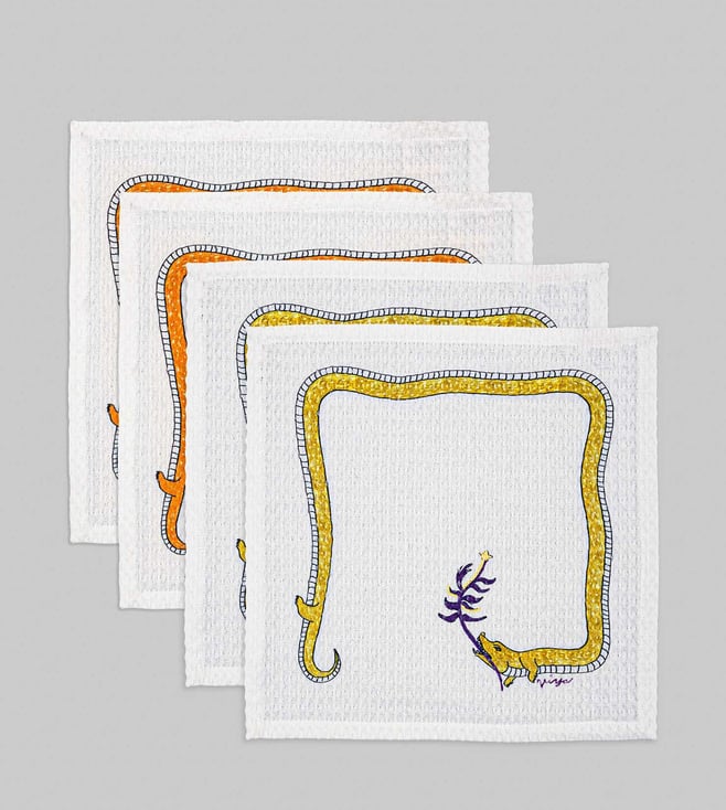 Ecru Lurking Crocodile Cotton Face Towels Set Of 4