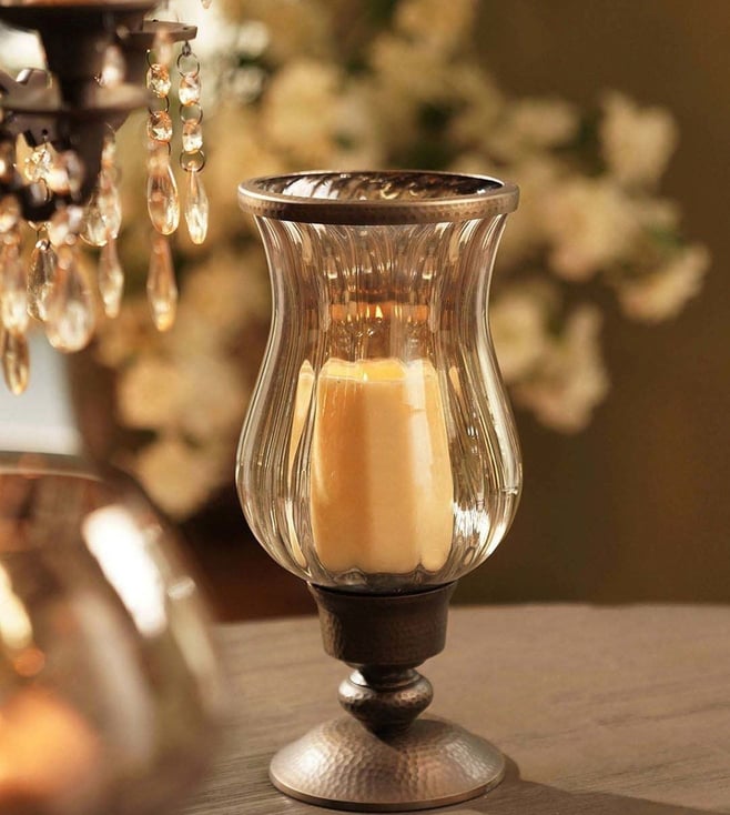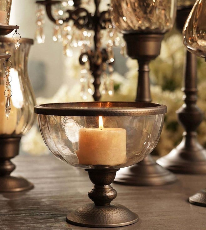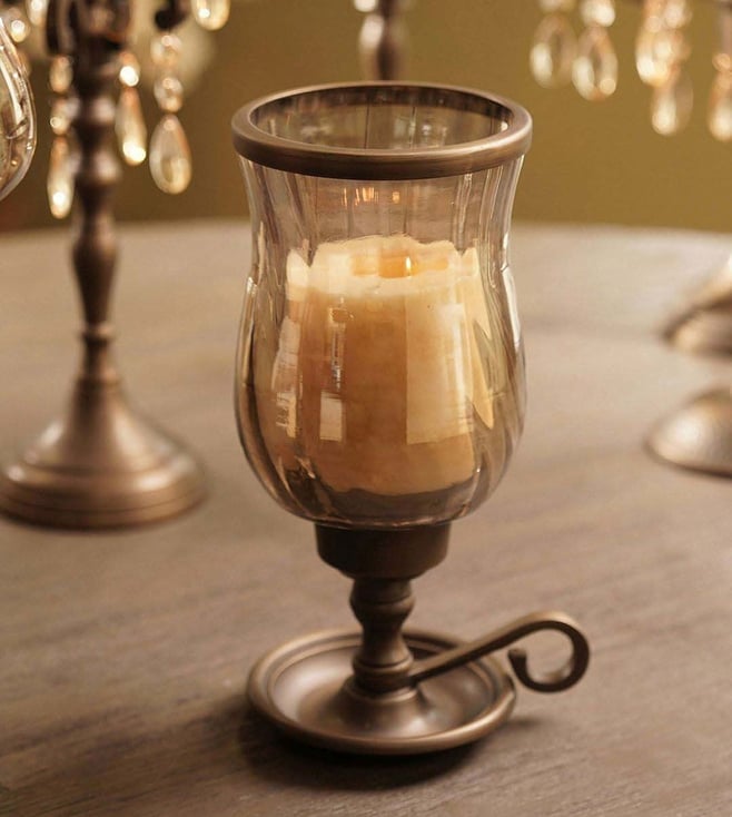 Brown Aluminium Antique Finish Candle Holder With Metal Base