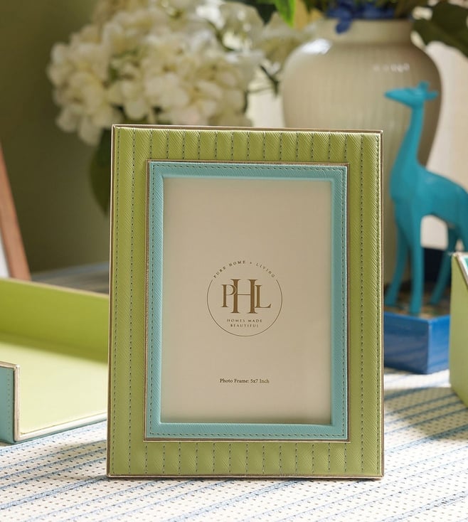 Green & Blue Stitched Faux Leather Photoframe (Medium)