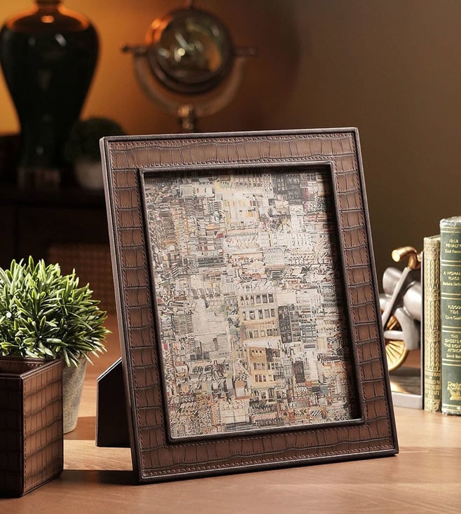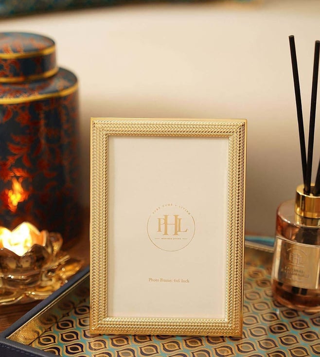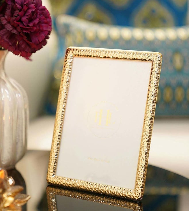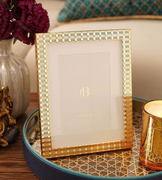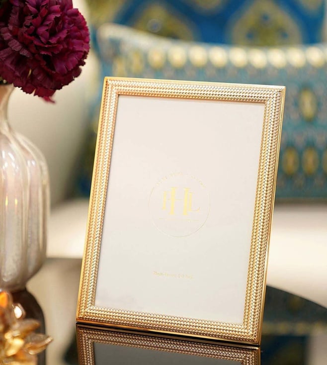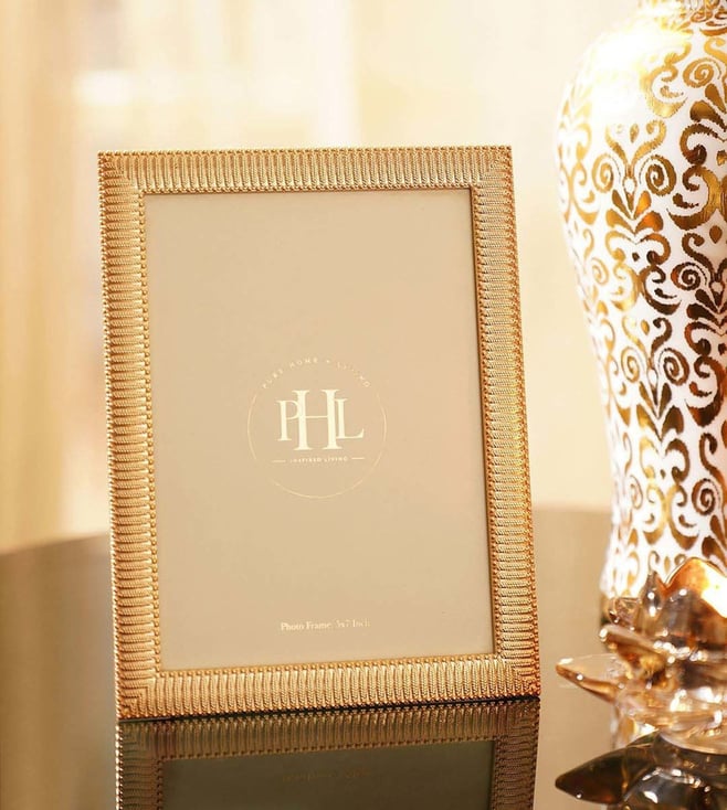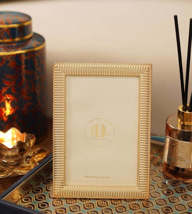 Gold Metal Ribbed Pattern Medium Photo Frame