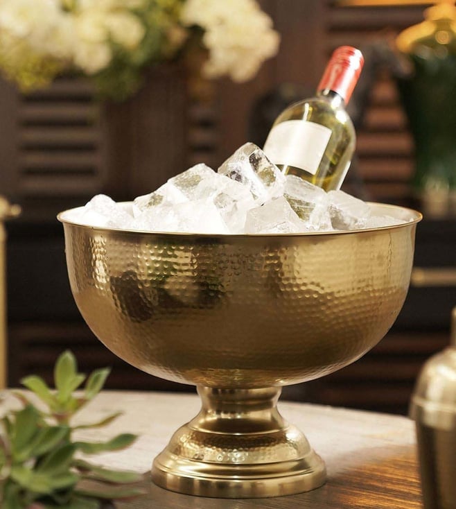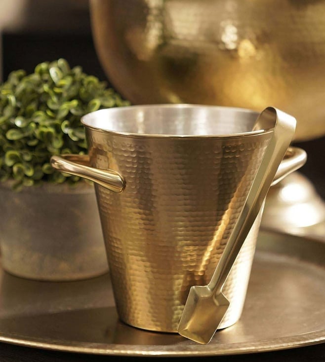 Gold Stainless Steel Matt Finish Hammered Ice Bucket With Tong