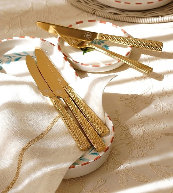 Gold Stainless Steel Zig Zag Textured Dessert Knives - Set of 6