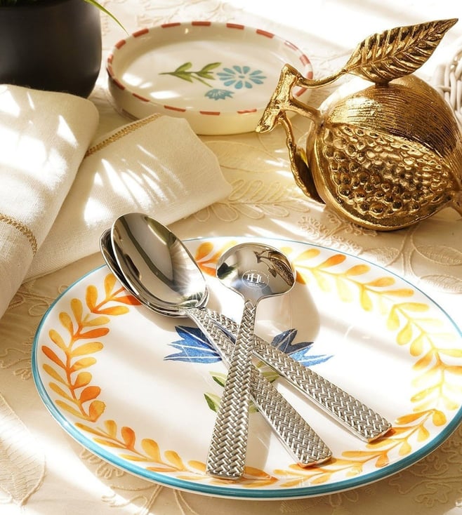 Silver Stainless Steel Zig Zag Textured Dessert Spoons - Set of 6