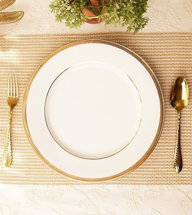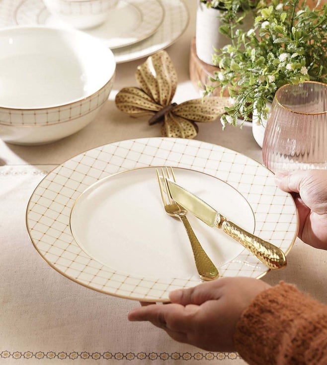 White Ceramic Criss Cross Detail Dinner Plates - Set of 2