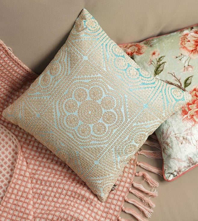 Blue Cotton Embroidery Cushion Cover