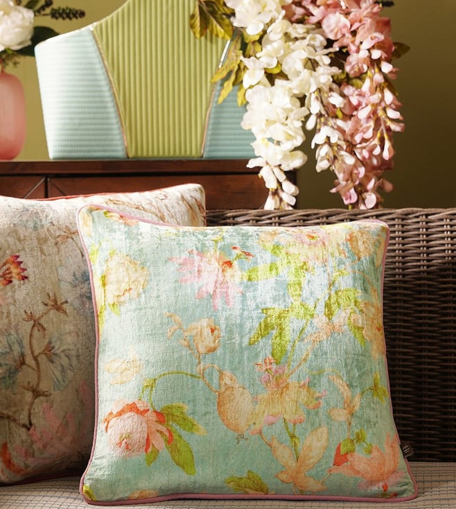 Blue Viscose Floral Printed Square Cushion Cover