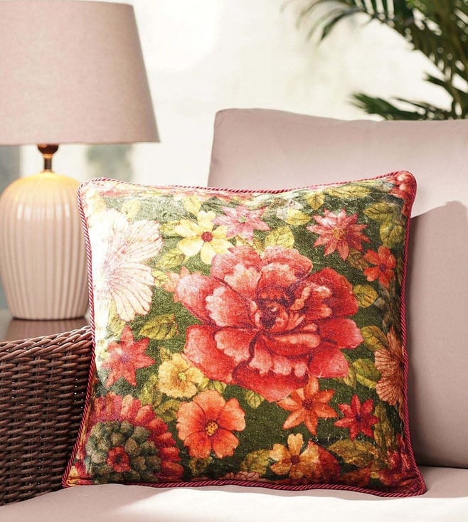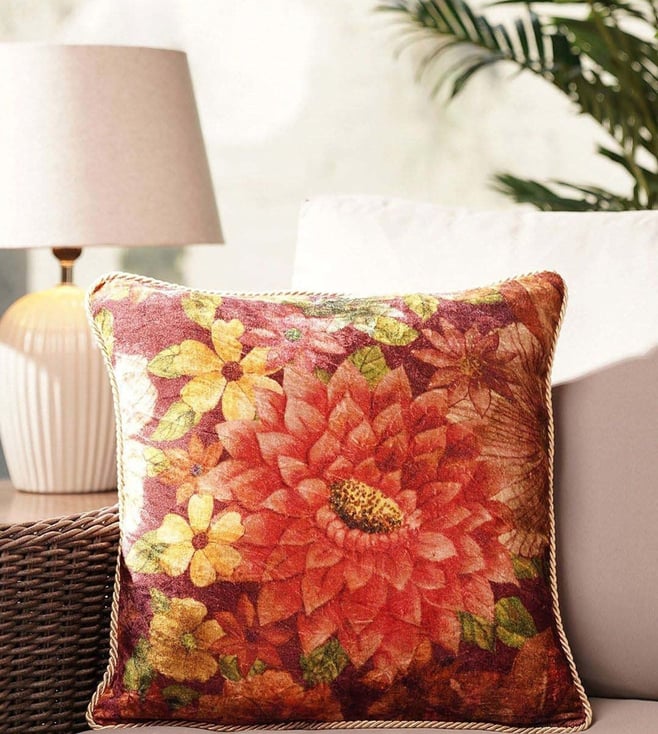 Orange Viscose Printed Square Cushion Cover